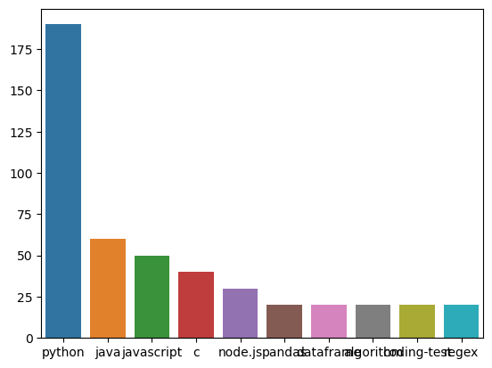 스크래핑 결과 시각화하기2 - 프로그래머스 질문태그 빈도 시각화