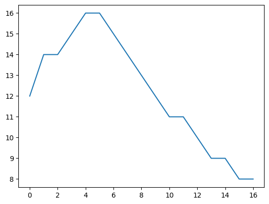 [12, 14, 14, 15, 16, 16, 15, 14, 13, 12, 11, 11, 10, 9, 9, 8, 8]