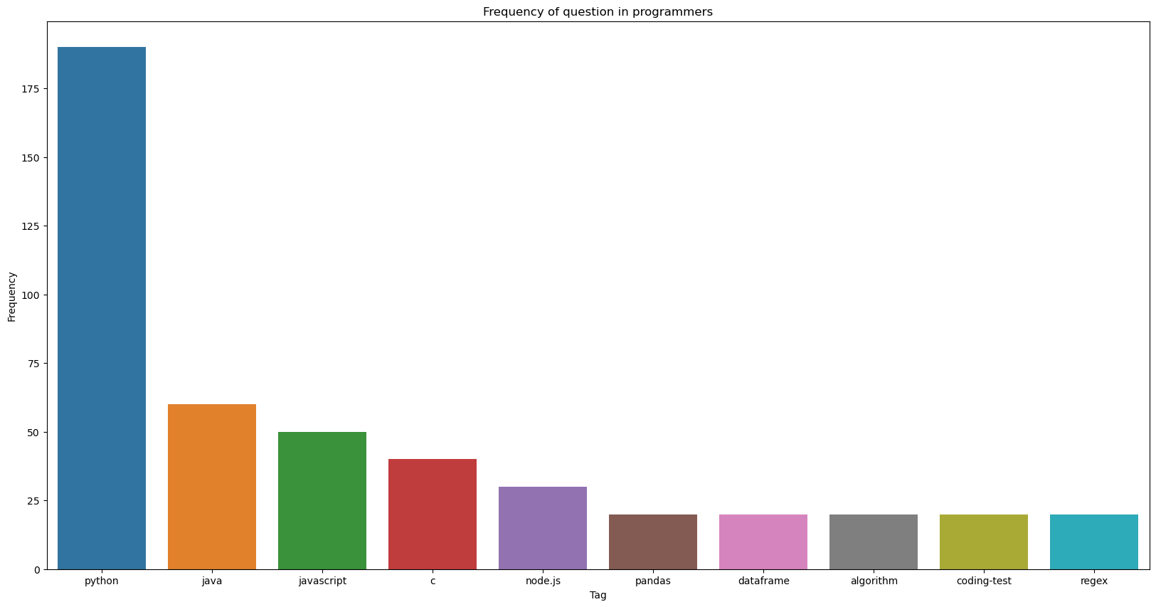 <AxesSubplot:title={'center':'Frequency of question in programmers'}, xlabel='Tag', ylabel='Frequency'>