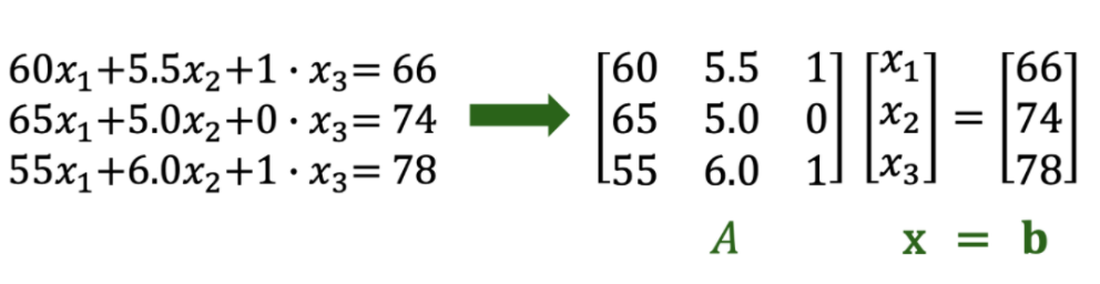 1. 선형시스템의 unknowns(미지수)를 모아 column vector(열벡터) x로 표현합니다.