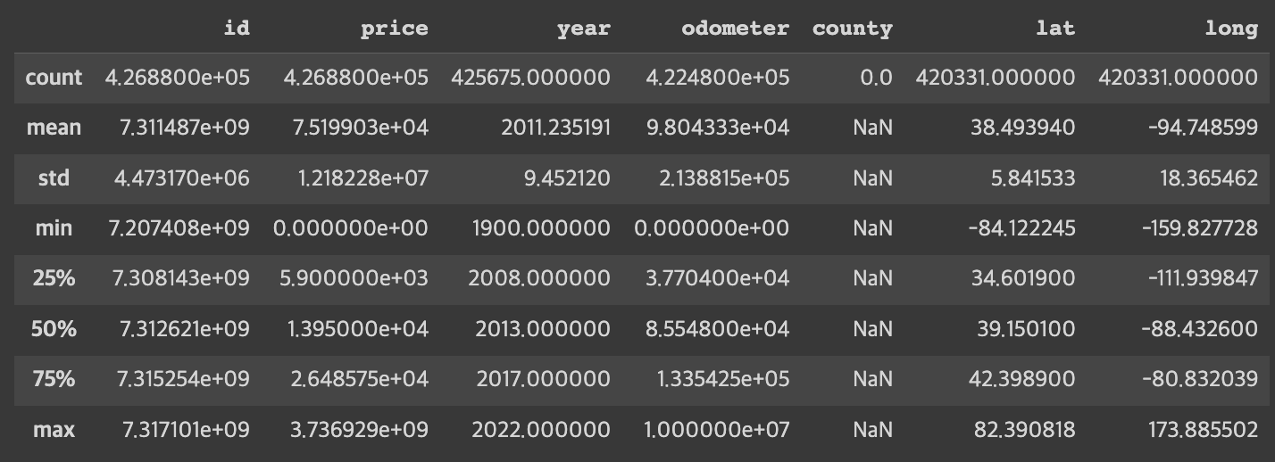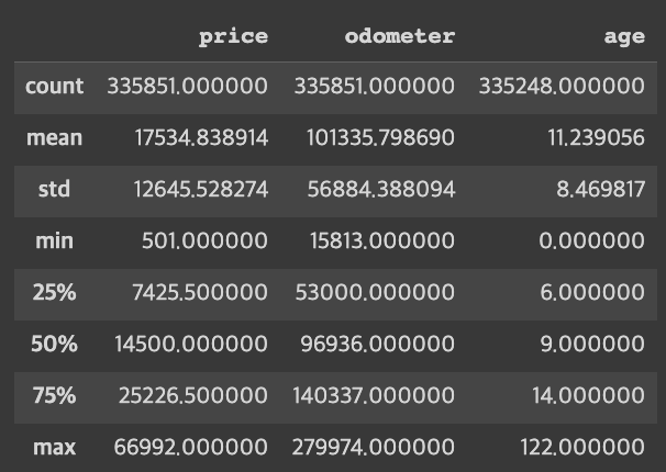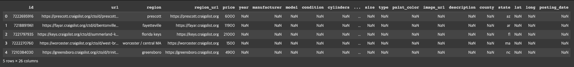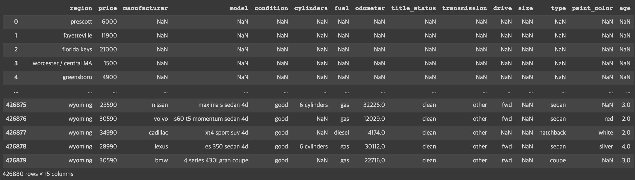 Index(['id', 'url', 'region', 'region_url', 'price', 'year', 'manufacturer',