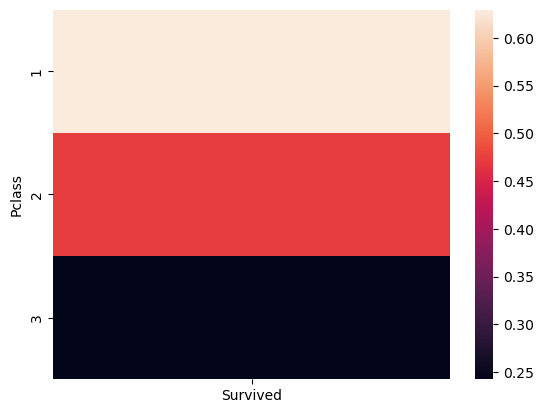 sns.heatmap(titanic_df[['Pclass', 'Survived']].groupby(['Pclass']).mean())