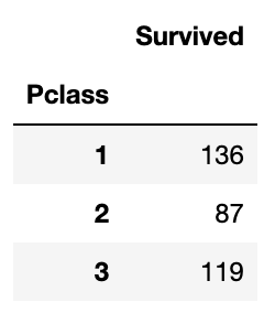 titanic_df[['Pclass', 'Survived']].groupby(['Pclass']).sum()
