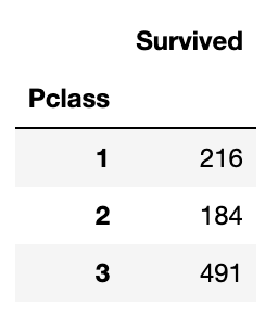 titanic_df[['Pclass', 'Survived']].groupby(['Pclass']).count()