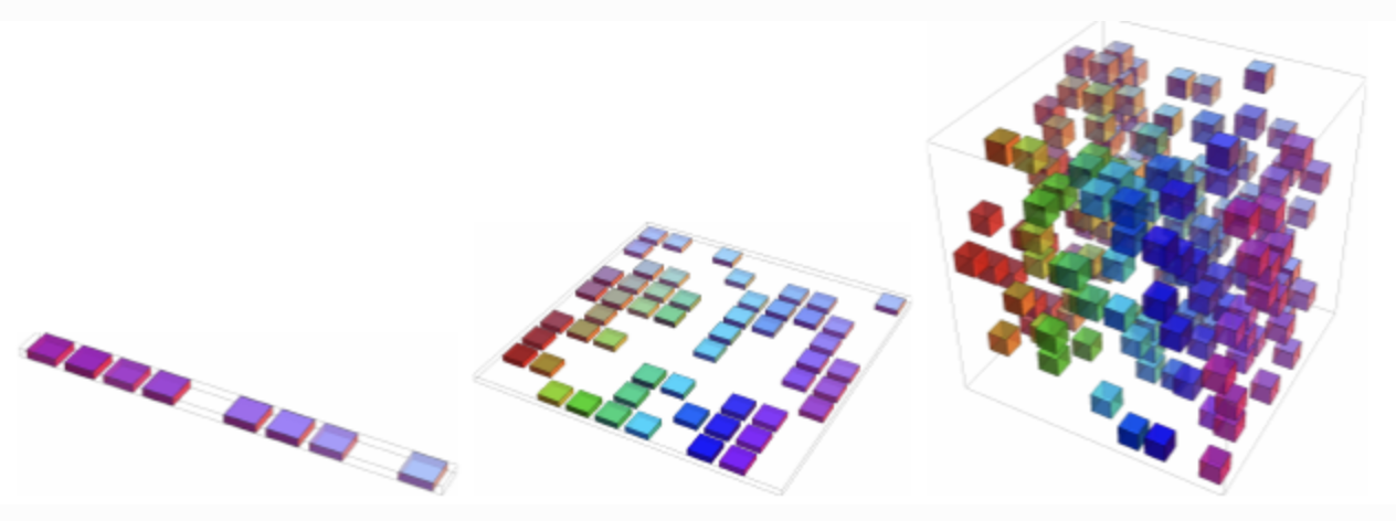 - 1차, 2차, 3차원에서의 차원의 저주 예시
