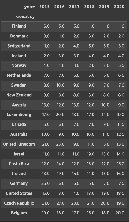 rank_table = df_all.pivot(index='country', columns=['year'], values='rank')