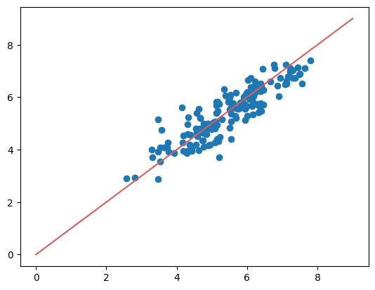 실제 값과 추측 값의 Scatter plot 시각화하기