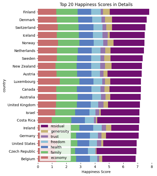 plt.title('Top 20 Happiness Scores in Details')