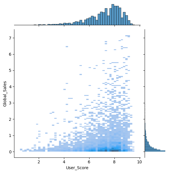 sns.jointplot(x='User_Score', y='Global_Sales', data=df, kind='hist')
