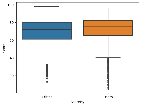 sns.boxplot(x='ScoreBy', y='Score', data=scores)