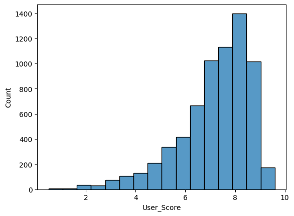 sns.histplot(data=df['User_Score'].apply(float), bins=16)