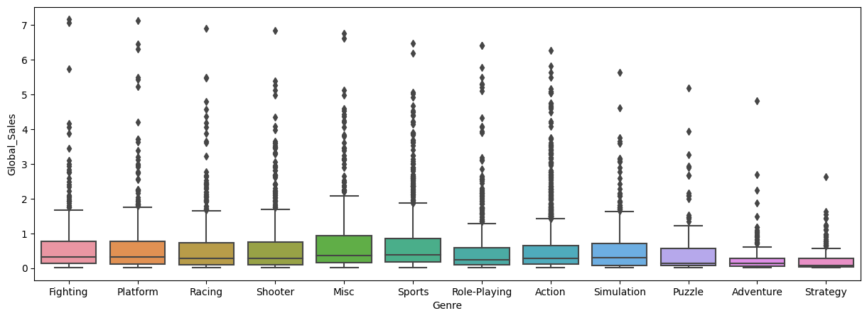 sns.boxplot(x='Genre', y='Global_Sales', data=df)
