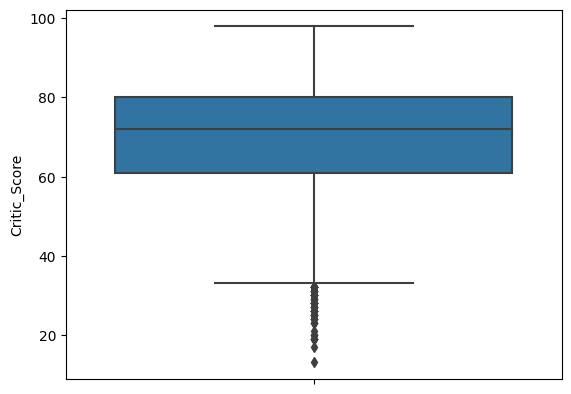 sns.boxplot(y='Critic_Score', data=df)