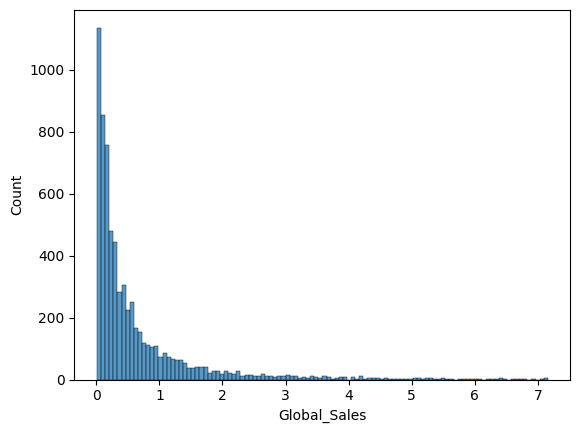 sns.histplot(x='Global_Sales', data=df)