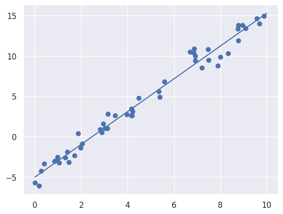 Scikit-Learn의 LinearRegression estimator를 사용해서 위 데이터를 가장 잘 표현하는 직선을 찾을 수 있습니다.