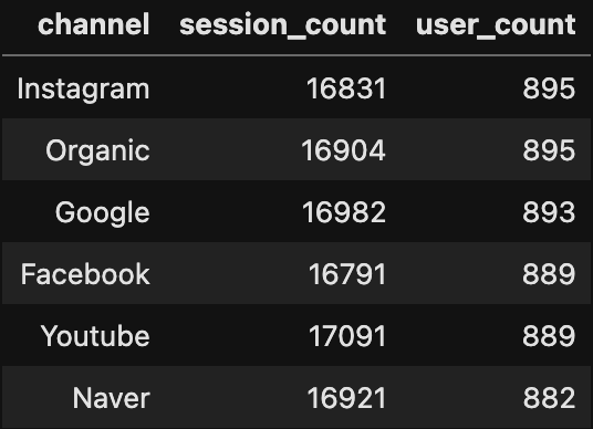 result = %sql SELECT * FROM raw_data.user_session_channel