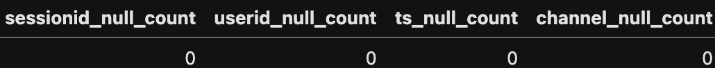 COUNT(CASE WHEN channel is NULL THEN 1 END) channel_null_count