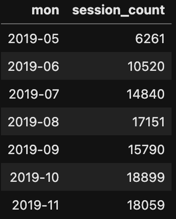 ORDER BY 2 DESC; -- ORDER BY session_count DESC