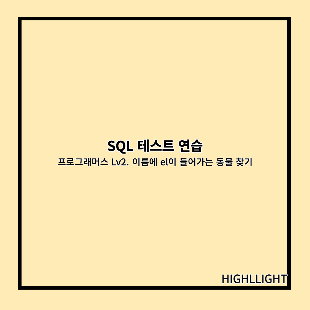 이름에 el이 들어간 동물을 검색하기 위해 '% el%'로 해서 쿼리를 작성했다.