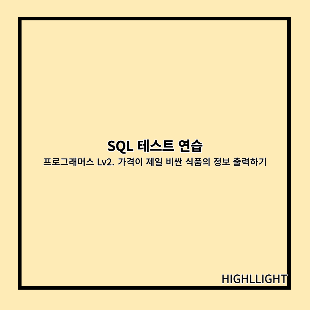 가격이 제일 비싼 식품을 조회하기 위해 PRICE을 내림차순으로 정렬하고, LIMIT 1을 설정하여 쿼리를 작성했다.