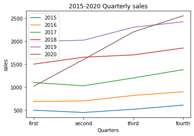 plt.title('2015-2020 Quarterly sales')