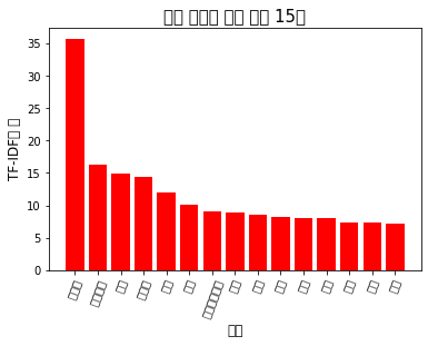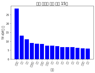 plt.ylabel("TF-IDF의 합", fontsize = 12)