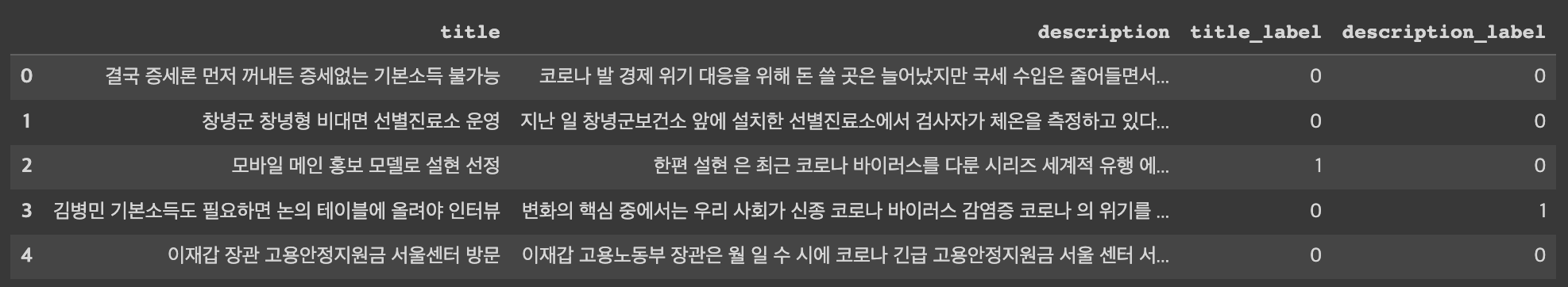 부정 감성 뉴스인 NEG_description_noun_join에 대해서도 같은 작업을 수행한다.