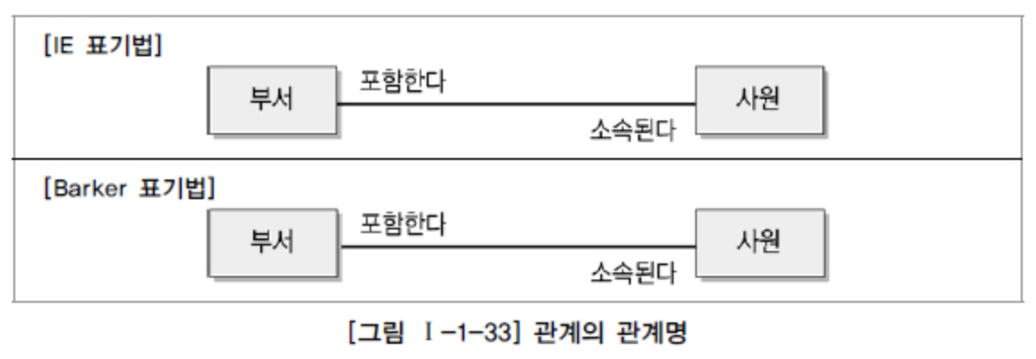 엔터티가 관계에 참여하는 형태를 지칭합니다. 각각의 관계는 두 개의 관계명을 가지고 있습니다.