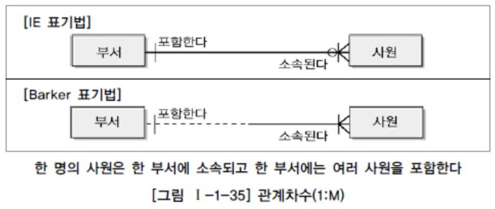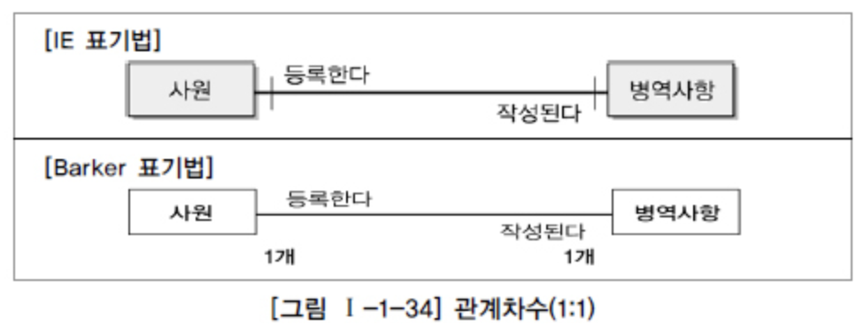 두 개의 엔터티 간 관계에서 참여자의 수를 표현하는 것, 가장 일반적인 관계차수 표현방법은 1:M, 1:1, M:N입니다.