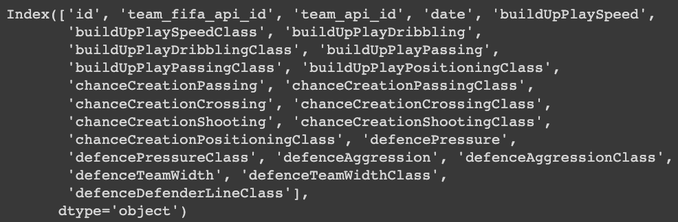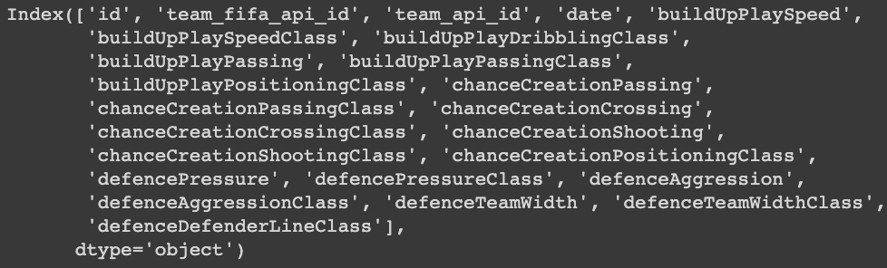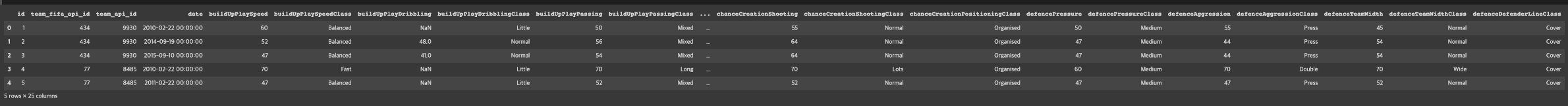 df_team_att = pd.read_sql_query('SELECT * from Team_Attributes', conn)