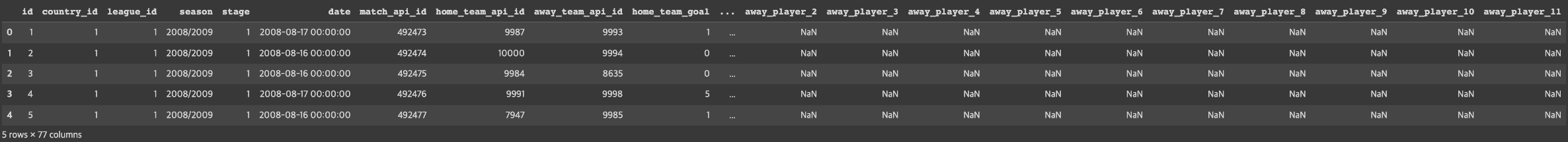 df_match = pd.read_sql_query('SELECT * from Match', conn)