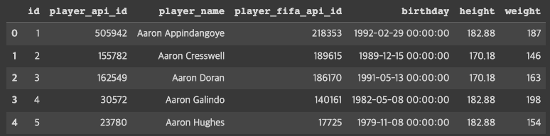 df_player = pd.read_sql_query('SELECT * from Player', conn)