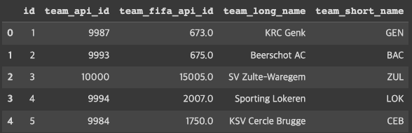 df_team = pd.read_sql_query('SELECT * from Team', conn)