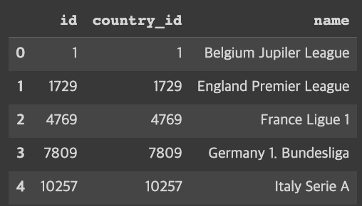 df_league = pd.read_sql_query('SELECT * from League', conn)