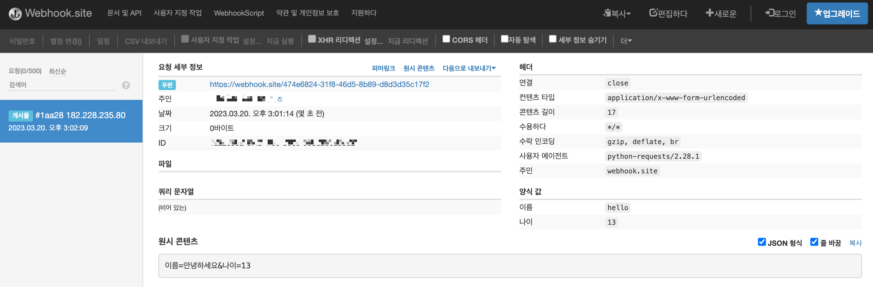 # POST를 활용하기 위해 다음 사이트를 이용해보도록 하겠습니다: https://webhook.site